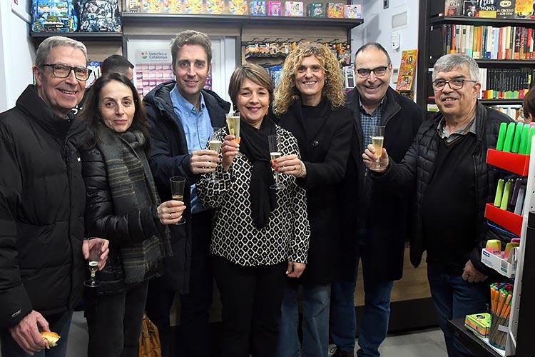 Inauguració de la nova llibreria la Ploma de Figueres, amb l’alcalde, Jordi Masquef, regidors, i amics-clients