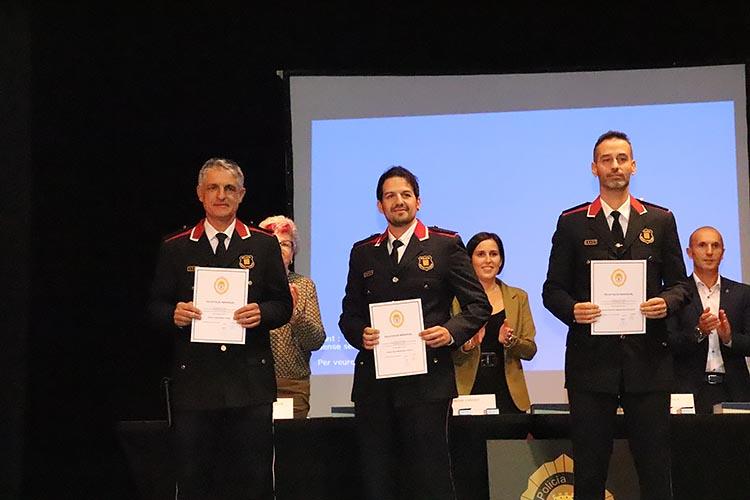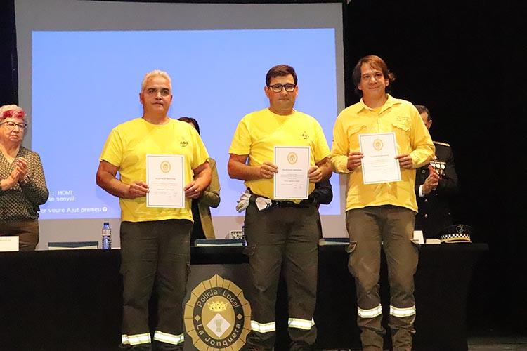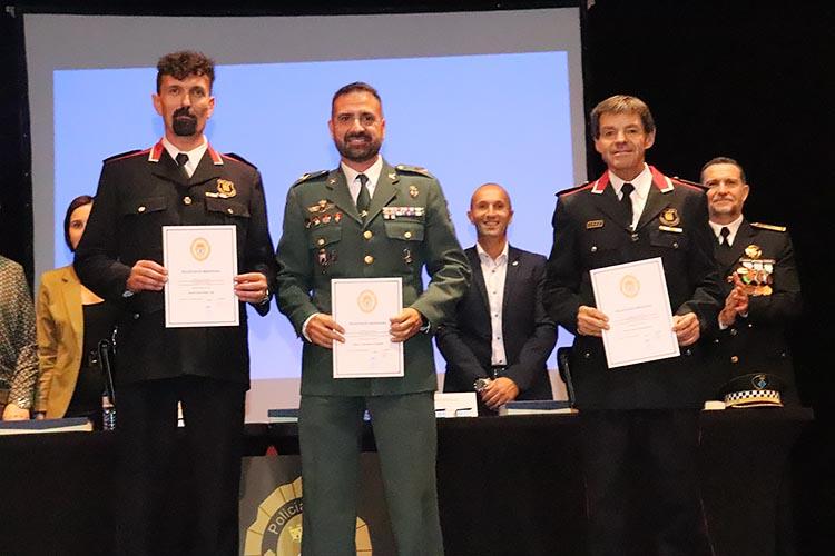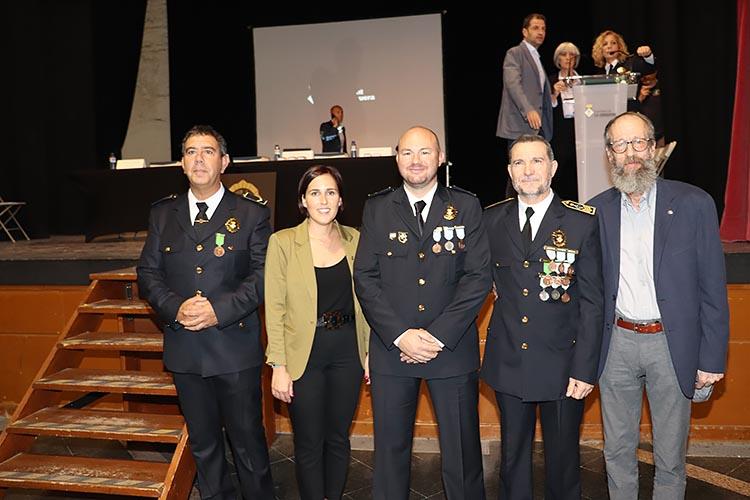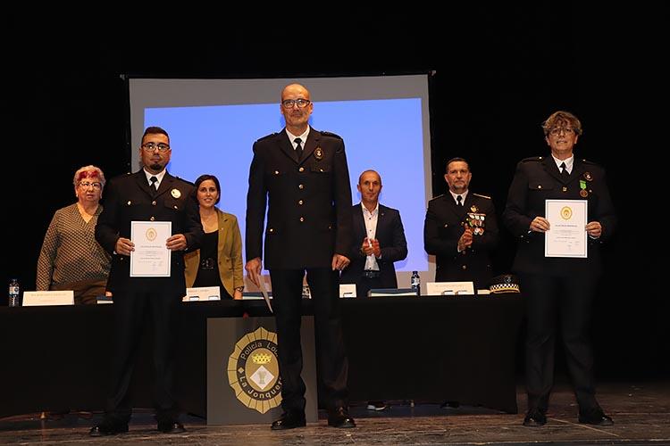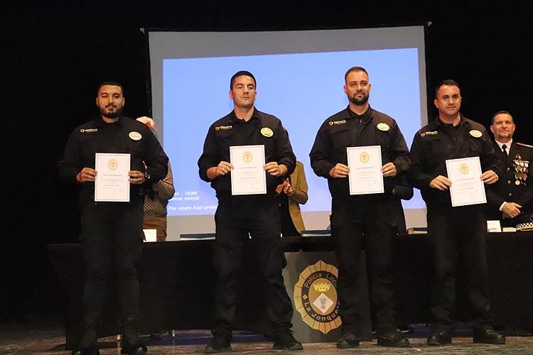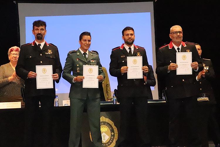 Durant l’acte es van lliurar diverses distincions en reconeixement de la tasca exemplar dels agents i col·laboradors. Entre els condecorats, es va atorgar la medalla de bronze al mèrit policial a diversos comandaments de la Policia Local: la Sra. Lluïsa Santos, Sr. David Sánchez i Sr. Albert Roca. També es va reconèixer la col·laboració d’agents com el Sr. David Casado i el Sr. Francisco Márquez, així com al Sr. Óscar Orozco, director de seguretat privada del Centre Comercial Gran Jonquera. A més, es va fer entrega d’una placa commemorativa a l’anterior alcaldessa, Sra. Sònia Martínez, per la seva dedicació al cos de la Policia Local.