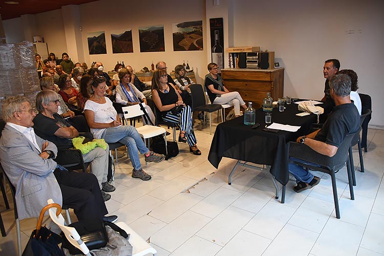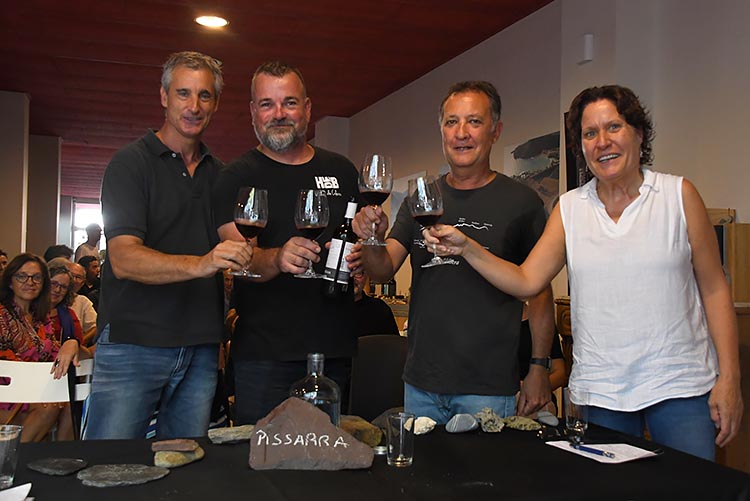 Ple de gom a gom en la primera edició de la Festa de la Pissarra a Colera, celebrada al celler Hugas de Batlle, amb la taula rodona “Sòls pissarrencs, vins exclusius” que ha donat a conèixer el substrat de les vinyes colerenques i la singularitat que dóna als seus vins. L’acte ha comptat amb Jordi Rodó, consultor en paisatge, la geòloga Montse Vehí i Delfí Sanahuja, enòleg del Grup Perelada. L’amfitrió de l’acte ha estat Edu Hugas.