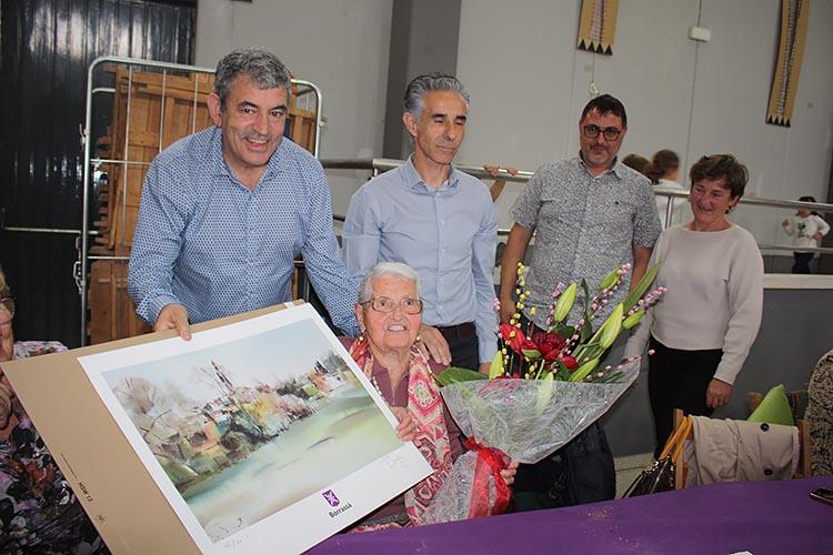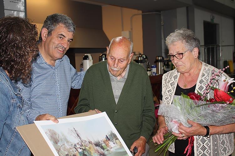 Després s’ha lliurat un ram de flors i la litografia a les persones que, enguany han fet o faran 90 anys i les que en tenen més de 90: Josep Frigola Abellí; Margarita Grau Selva; Agustina Quiñonero Padilla; Dolors Daunis Genover i Josep Comas Darnés. I, finalment, s’ha entregat una litografia a la resta de persones jubilades presents a la celebració.